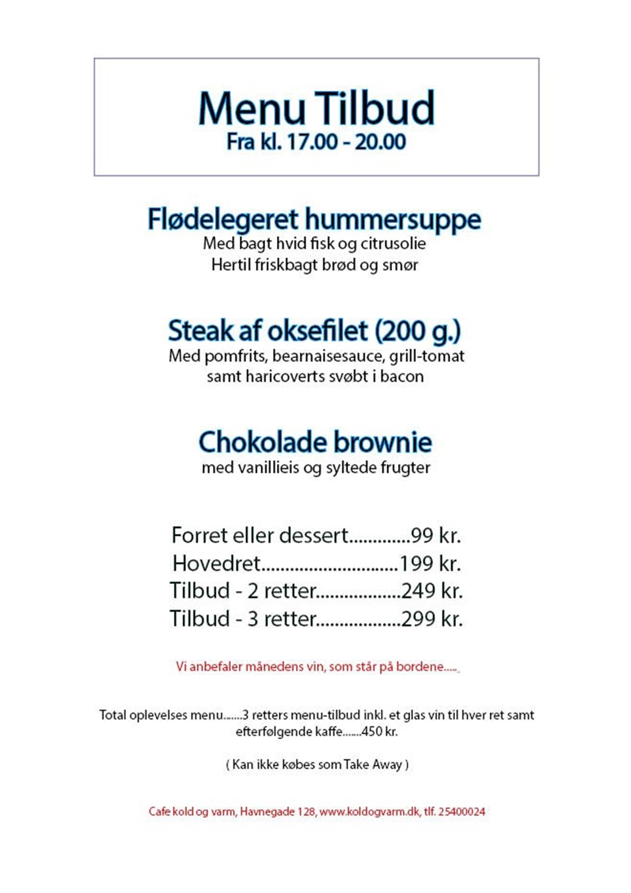 | Mariagergryde m/ oksekød og pommes frites | 169,- |