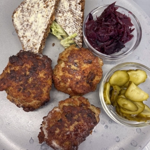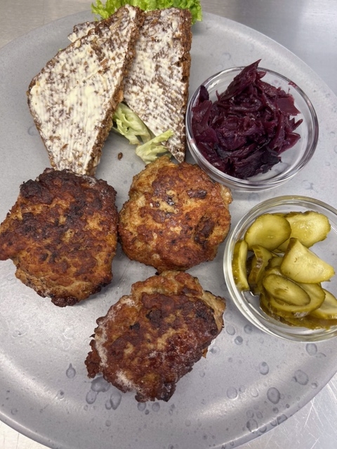 | Hjemmelavede frikadeller m/surt | 99,- |