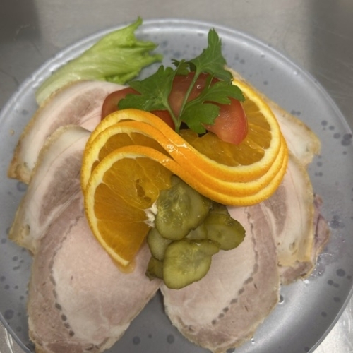 | Flæskesteg m/rødkål & surt | 79,- |