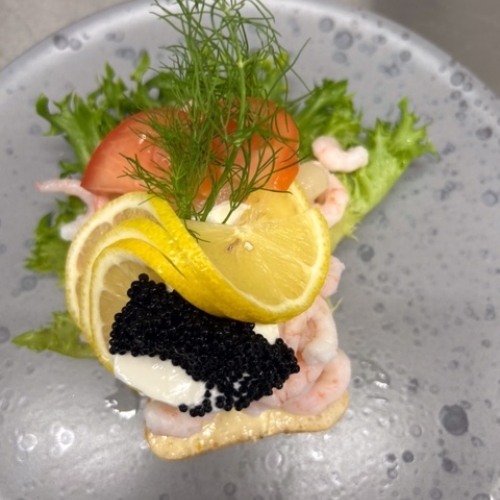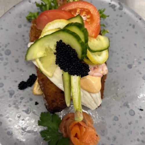 | Stjerneskud m/ kogt & stegt fisk | 179,- |